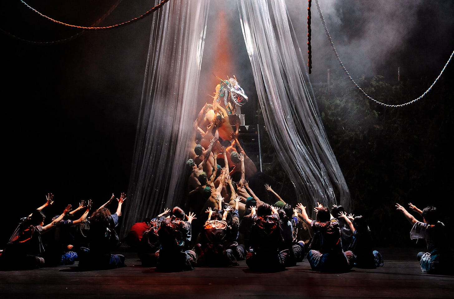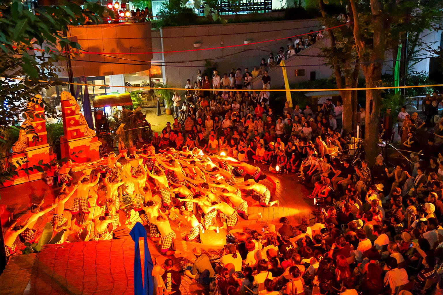 お祭りの期間中、芸能山城組によるバリ島のケチャの独自解釈が披露される。ケチャは本来、宗教的儀式に根ざしていた劇的な詠唱の形式であるが、彼らの演奏では一切の楽器を用いず、自分たちの声が連動したリズムを頼りに、圧倒する高揚感と催眠的な雰囲気を生み出す。長年にわたり、このお祭りは単なるパフォーマンスを超え、「生きた音楽人類学の実験」としての側面を持つようになった。