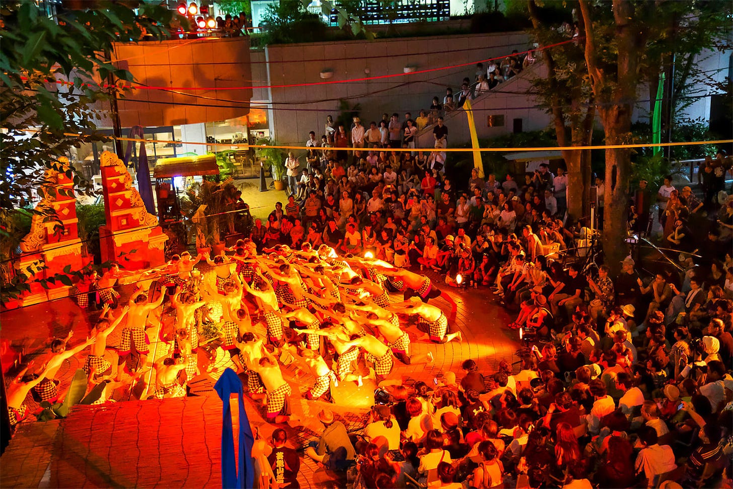 芸能山城組の文化的・音楽的アイデンティティの中心にあるのが、1976年以降毎年開催される 「ケチャ祭(Kecak Festival)」である。このイベントは、特にバリの音楽伝統への深い造詣を中心に、芸能山城組の多様な音楽的影響を祝う活気に満ちたものである。一般的なコンサートとは異なり、ここでの体験は単なる演奏会にとどまらない。東京のコンクリートジャングルのど真ん中に位置する新宿・三井ビル55HIROBAを舞台に、音、リズム、動きにどっぷりと浸ることができるのである。