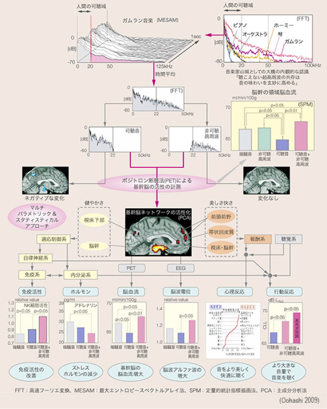 山城の研究は、日本の神経科学者と共同で行われ、リスナーがこの高周波を含む音楽に触れると、脳内のα波活動が増加することを発見した。α波は、リラクゼーション、創造性の向上、深い集中状態と関連するとされており、山城はあるインタビューの中で、この現象を「耳だけでなく、身体が聴く音楽」と表現している。