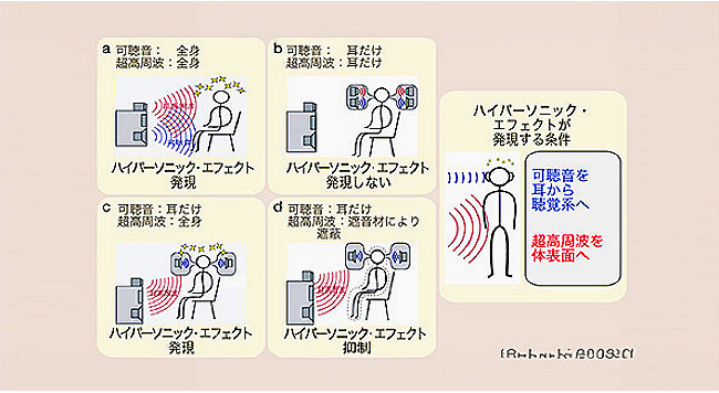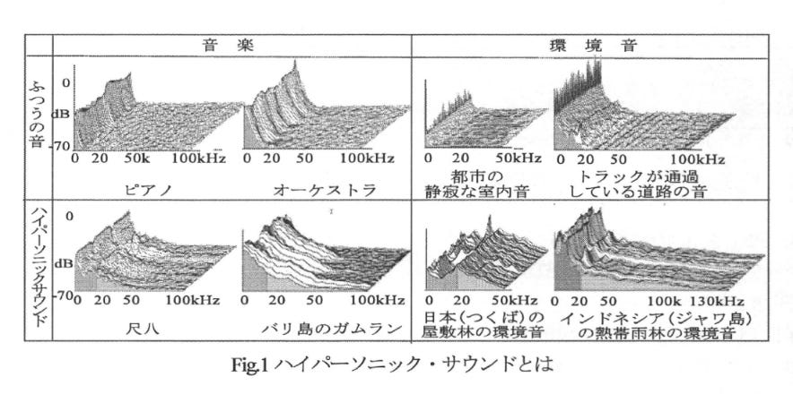 芸能山城組は、没入感のあるライブ・パフォーマンスだけでなく、音の忠実性(サウンド・フィデリティ)に徹底的にこだわることでも名高い。この追求は、彼らの録音作品を特徴づけるだけでなく、科学研究にも影響を与えてきた。その中心にあるのが、山城祥二による「ハイパーソニック・エフェクト(Hypersonic Effect)」に関する研究である。この画期的な理論は、超音波域(20kHz以上)の周波数は人間の可聴範囲を超えているものの、脳に良い影響を与え、リスニング体験を向上させる可能性があると主張するものである。
