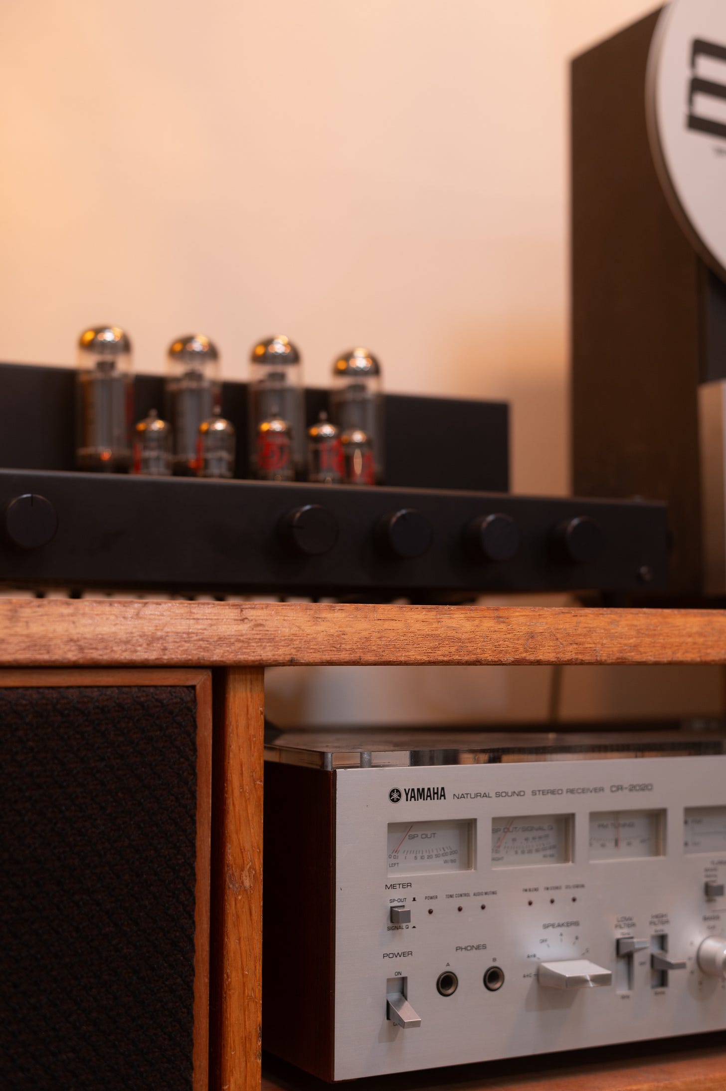 それぞれのミキサーに性格があって、どれも学びが多かった。音をどうコントロールするかという視点が広がったのは、こうした実機との対話があったからこそだと思う。Audio Goldからは、アンプやプレイヤー周りの機材もいろいろ試させてもらっている。Leben CS300XSのパワーアンプ、Yamaha CR-2020のヴィンテージ・レシーバー、Revox B77のオープンリール機、そしてAudio Gold特製のTechnicsプランス(筐体)など。プリアンプも今はAudio Goldからのもので、時々入れ替えながら使っている。こういう機材の違いを、自分たちの空間で試せるというのは本当に大きい。誰かの家や会場で聴くのとはまったく違う。自分の耳で、自分の空気の中で、その変化を体験できるというのは、ものすごく贅沢なことだと思っている。