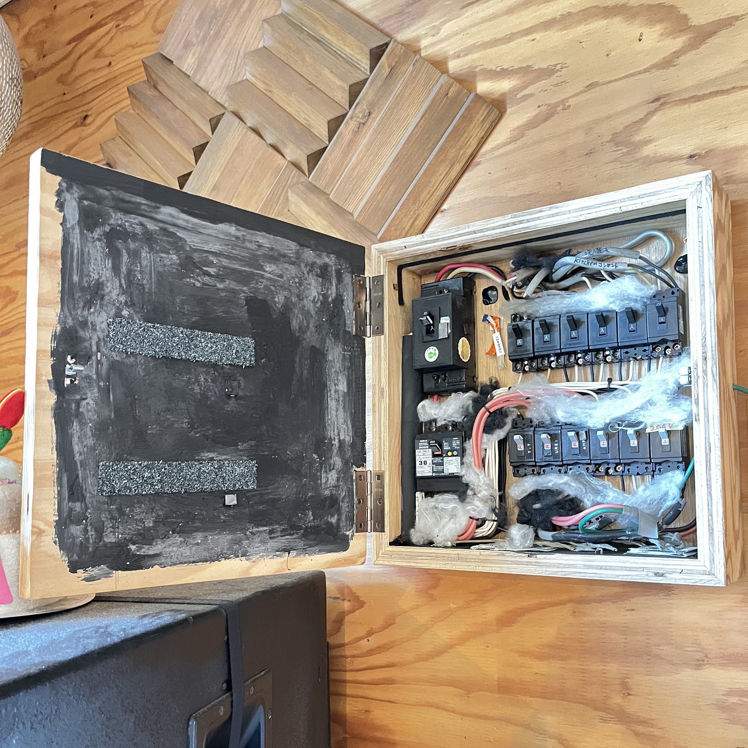 また、電磁波や静電気を排除するために、音響に関する執着レベルの対策を施しています。配電盤には、「貴陽石(きようせき)」と呼ばれる、群馬の山で採れる特殊な石を加工して塗り込んでいます。これはアコースティックリバイブ社が使用している素材で、静電気をギュッと抑えるのに非常に効果的です。この細部にわたる音響エンジニアリングが、最適な音質を保っているんです。